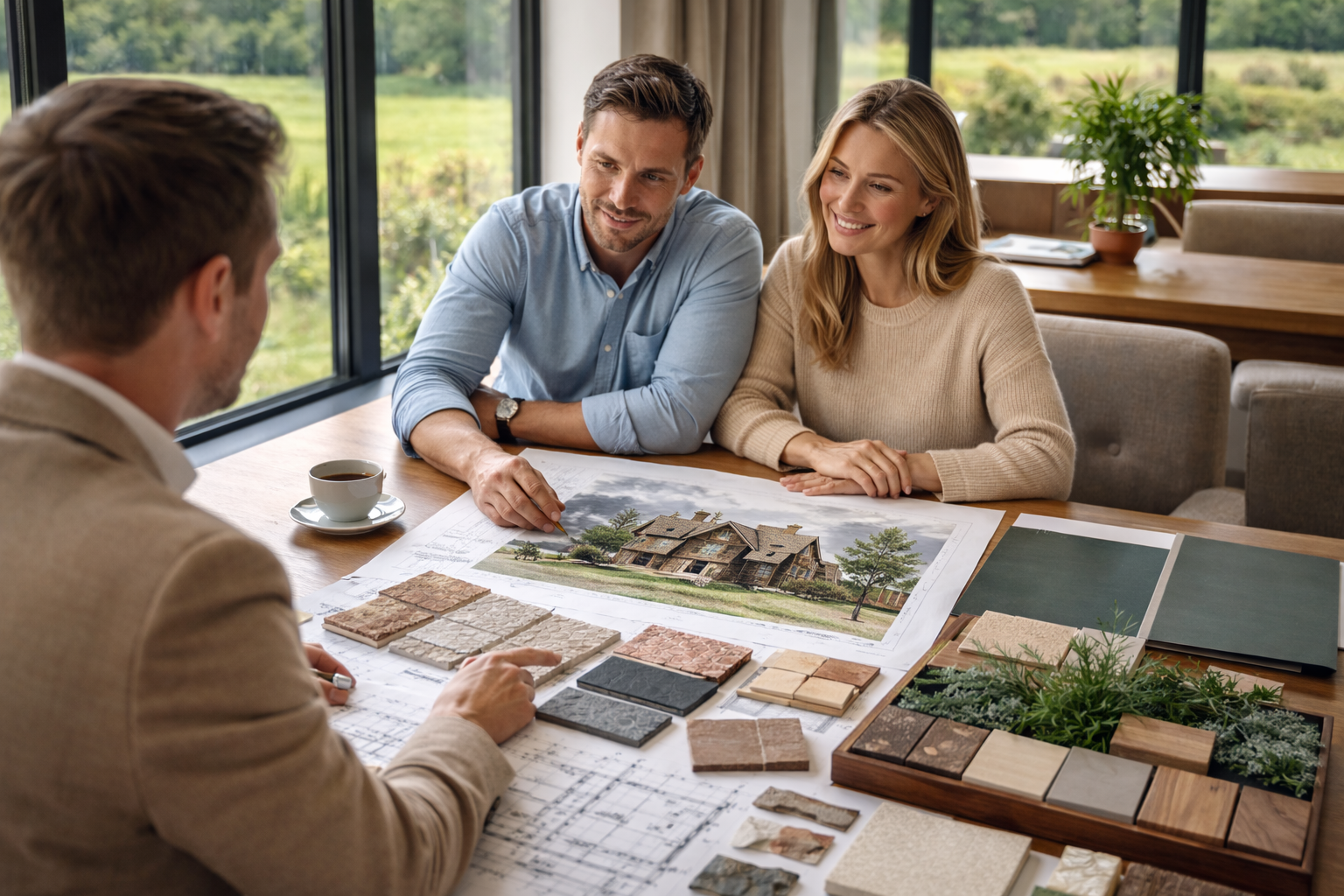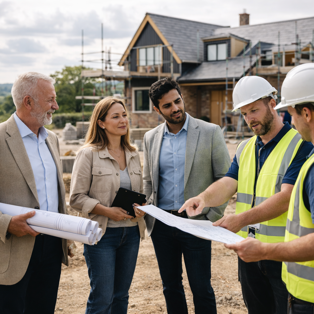 With custom build, you purchase a plot with planning permission already secured, then work with our trusted contractors, architects and suppliers to shape your new home around your lifestyle. You have freedom over internal layout, materials, and finishes — while we and our partners handle the build, keep costs transparent, and support you from start to finish.
